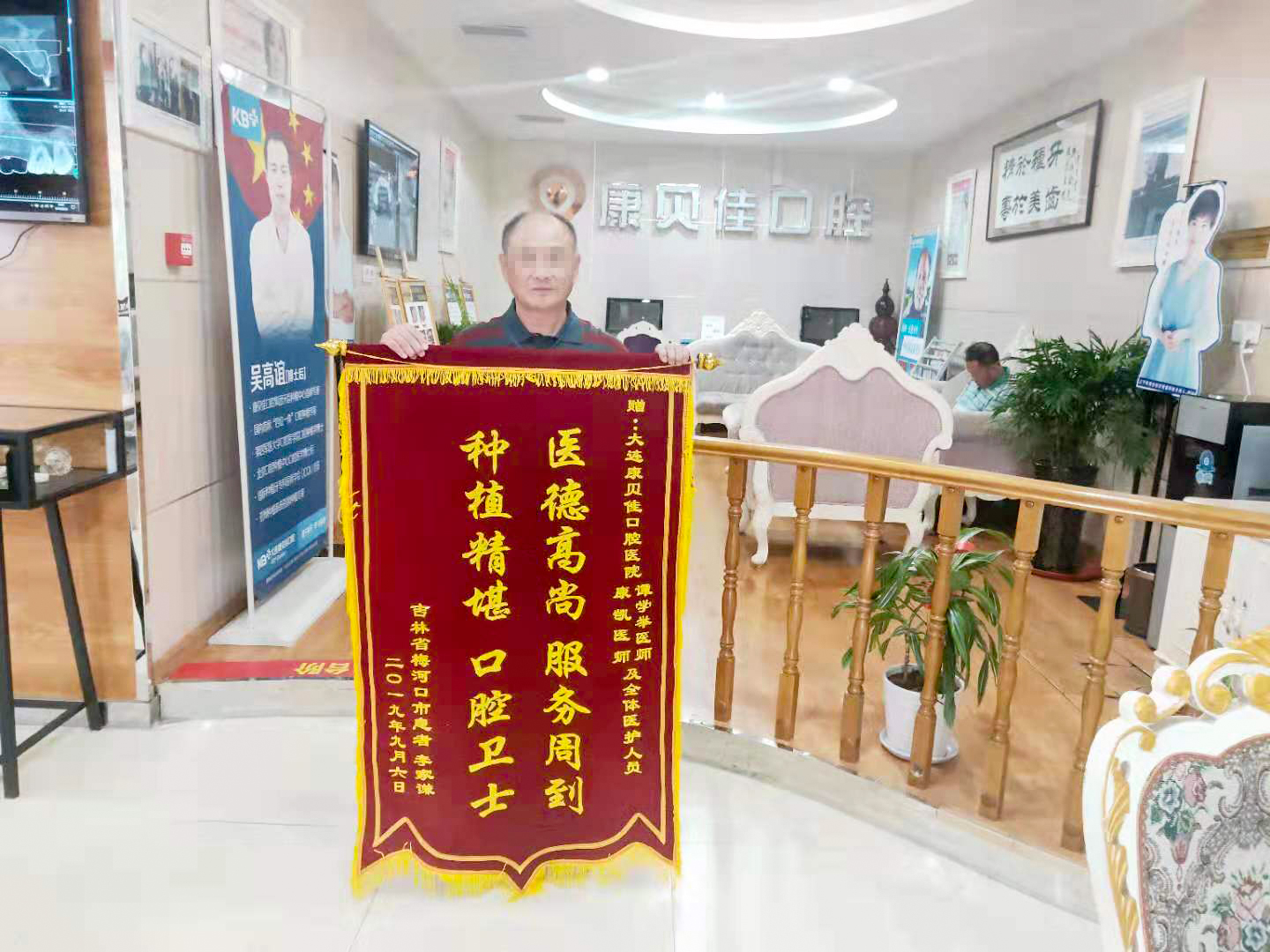 近日,李先生手捧着一面“医德高尚 种植精湛 ”的锦旗送到了我院以示感谢,李先生非常感激地说道:“种植牙跟真牙一样,我现在又可以像以前一样毫不费力地吃东西了!“感谢大连康贝佳口腔谭学举医师的精心治疗,感谢全体医护人员的热情服务。”锦旗虽普通,却深藏着李先生浓浓的感激之情和对谭院长专业技术的认可以及对康贝佳优质服务的褒奖。患者高度的肯定和由衷的感谢。是每个医者不懈的职业追求。