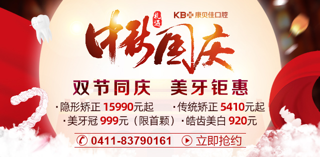 金秋送爽,丹桂飘香。今年10月,国庆节与中秋节双节同庆,月底又迎来了我国法定的老人节重阳节,是大家回家团聚、享受亲情的时刻。大连康贝佳口腔特举行美牙优惠大放送!旨在让更多牙齿缺失及其他口腔困扰的朋友重新拥有一口健康美丽的牙齿。