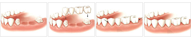 2、固定假牙:舒适但要磨除两边的健康邻牙